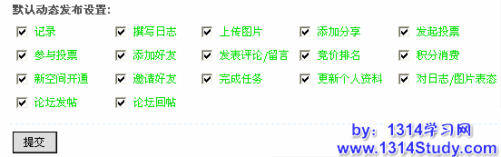 默认动态发布设置:设置论坛各操作动态发布与否,具体项目如下: