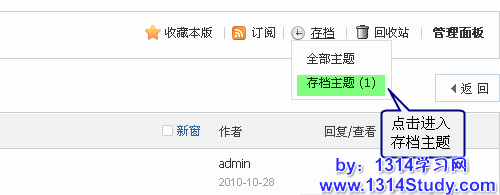 3、移动到存档表中的主题,会在主题所在的版块下建立一个存档区(名称可自定义),通过存档区可浏览存档表中的主题;