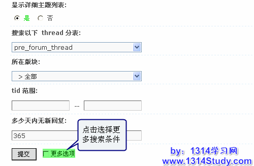 “搜索 thread 分表”会列出主题表存在的所有分表,指定其中一个主题分表,在其中进行搜索。