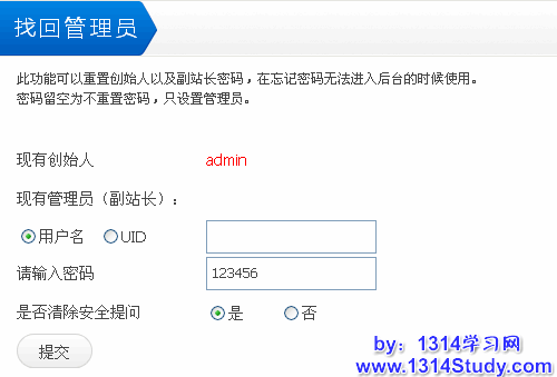 此功能可以重置创始人以及副站长密码,在忘记密码无法进入后台的时候使用。