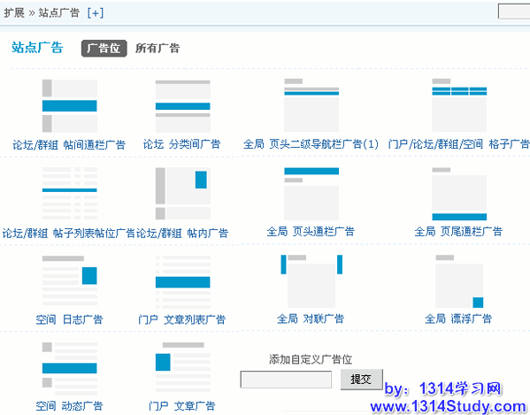如果站长觉得内置广告位不够灵活方便的话,那么选择自定义广告是最佳的方法,Discuz! x1.5在DIY页面或者任何区域都可以调用自定义广告,使得站长在实际运营过程中对选择广告位有较大的自主权。