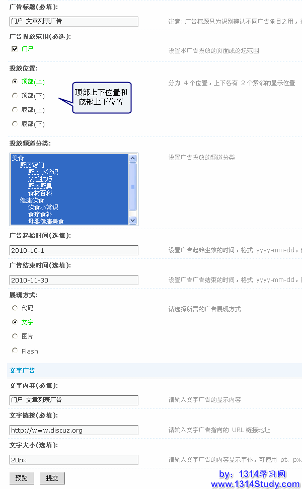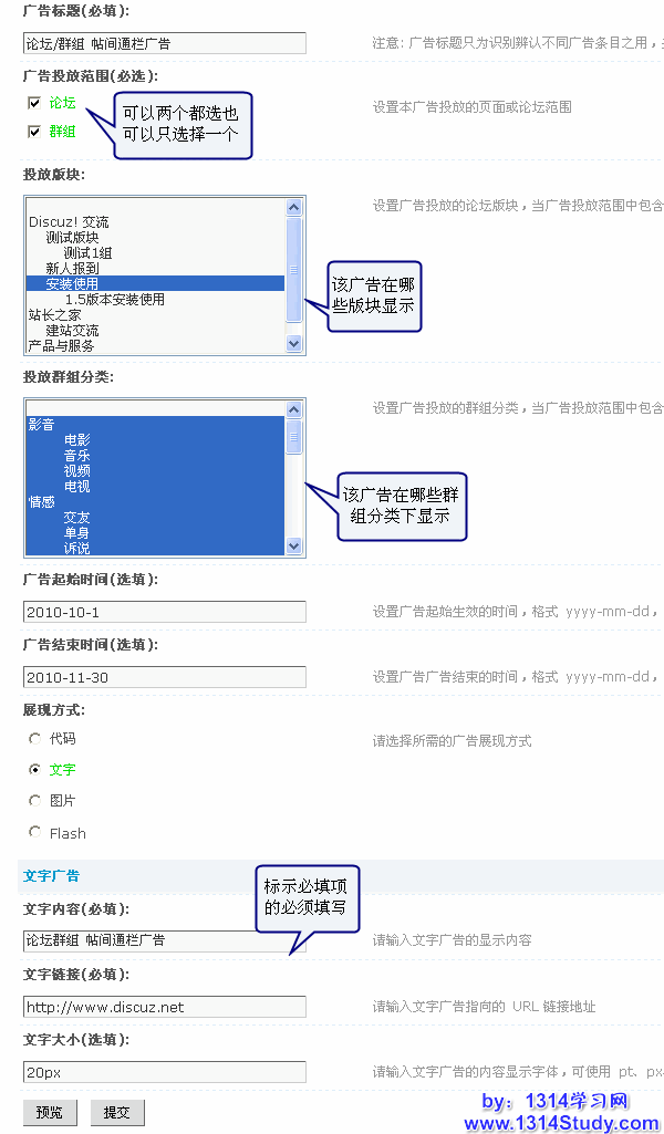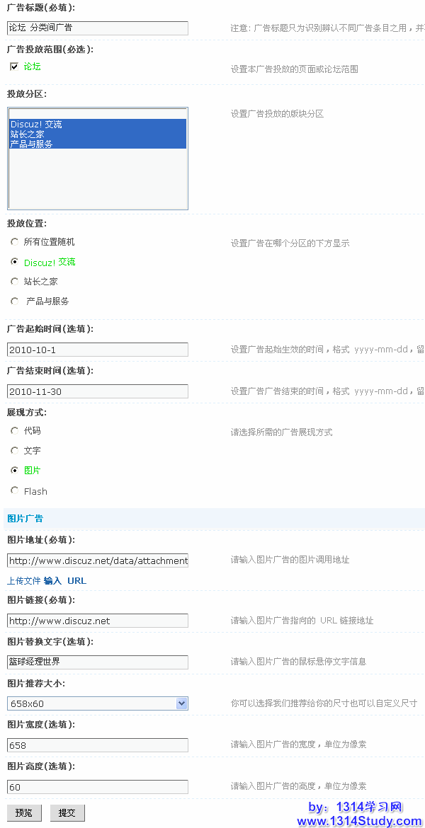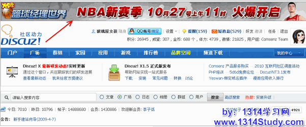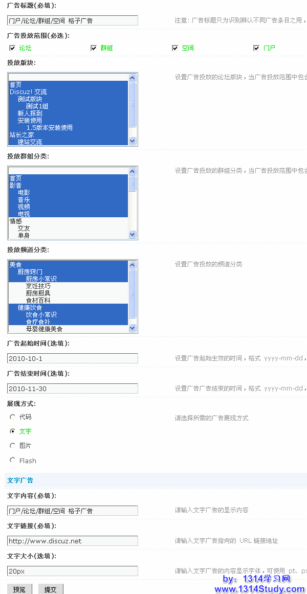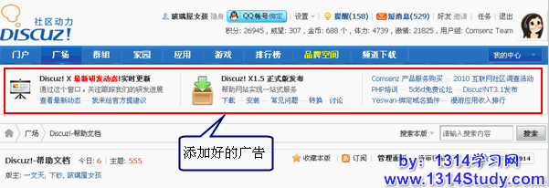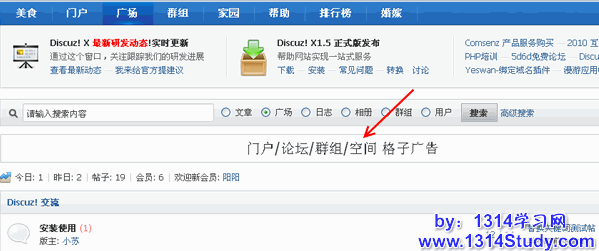 和 Discuz! X1 相比投放范围增加了门户和空间的投放。
