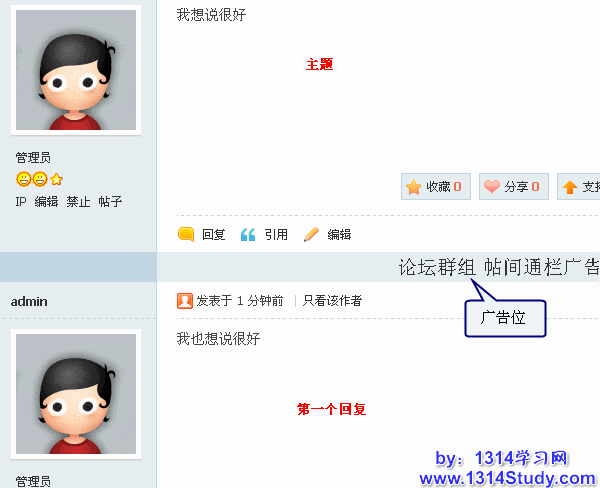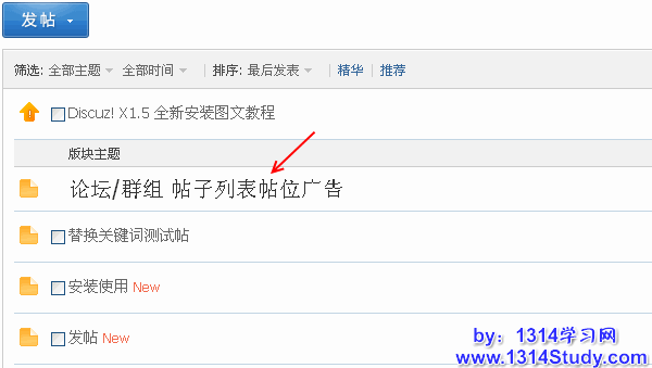 展现方式:帖位广告显示于帖子列表页第一页的帖子位置,可以模拟出一个具有广告意义的帖子地址,吸引访问者的注意力。