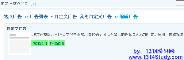 添加“内部调用”复制弹出的代码可以在站点内的任意页面添加广告。