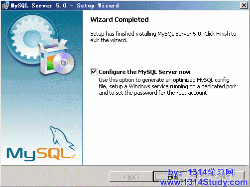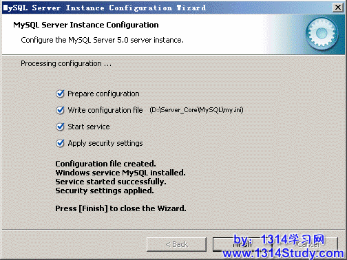 待文件复制安装完毕后,进行MySQL设置界面,单击Finish。