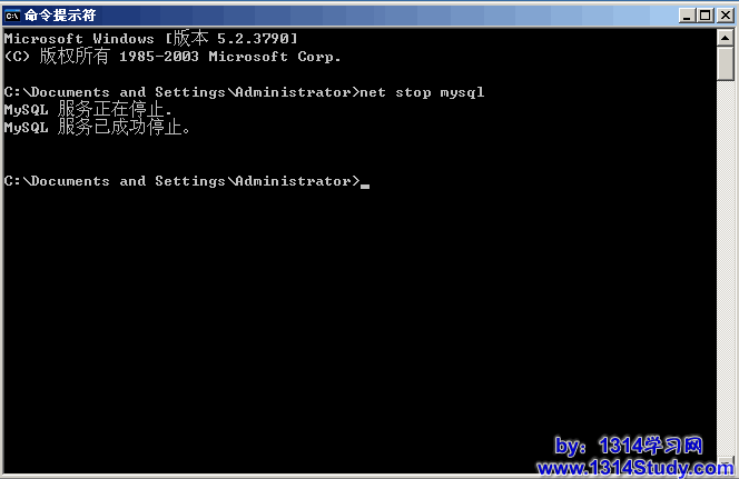 打开cmd命令提示符窗口,输入命令:net stop mysql 停止MySQL服务运行;