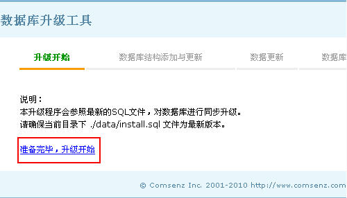 2、在浏览器中运行 http://www.domain.com/install/update.php 开始升级(其中 http://www.domain.com 为你的站点访问地址)