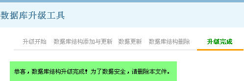 4、升级成功后,请您删除 update.php 程序,以避免可能的安全问题