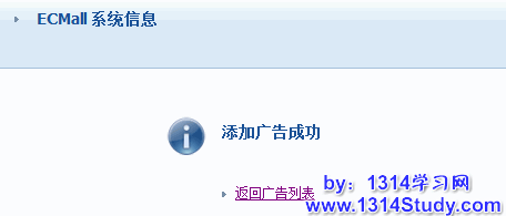 填写好以上信息后点击“确定”,会出现“添加广告成功”的提示,如图 14 所示: