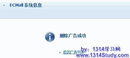 点击图 8 广告列表中某一个广告的“删除”,会出现“删除广告成功”的提示,如图 16 所示: