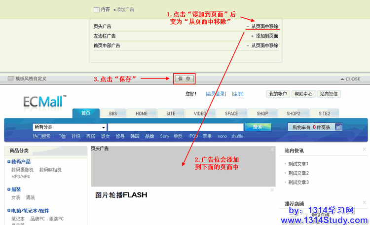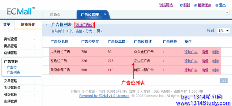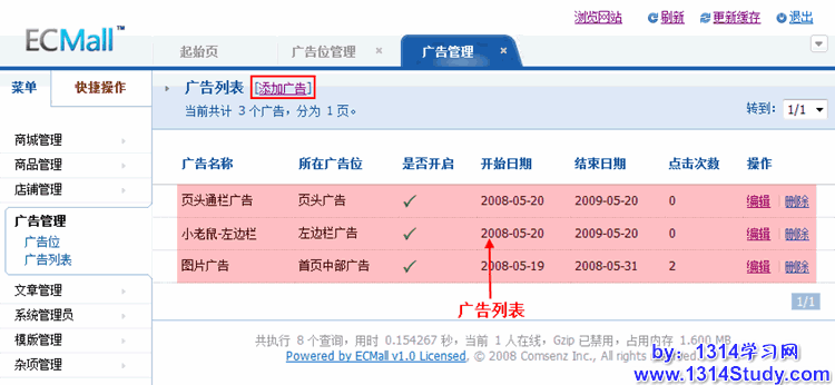 但是通过下面的设置,就会发现 ECMall 的广告设置很方便,也很,人性化了,如图 2 所示: