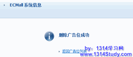 点击图 3 广告位列表中某一个广告位的“删除”,会出现“广告位删除成功”的提示,如图 7 所示: