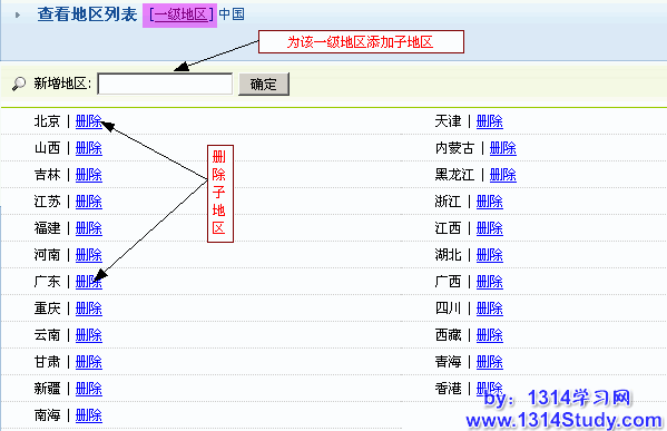 点击图上方的一级地区,即可进入刚才的一级地区列表,添加一级地区。