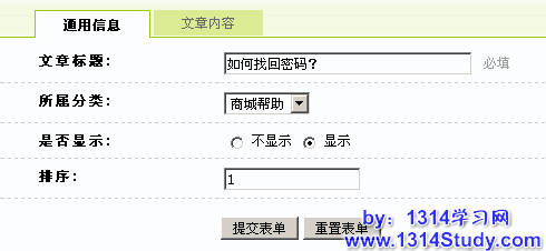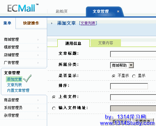 ECMall 后台 => 文章管理 => 添加文章: