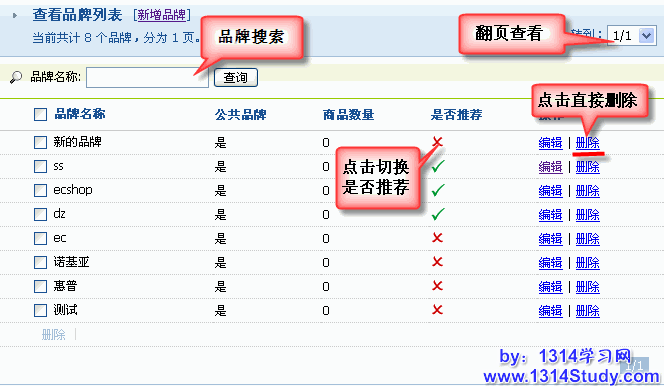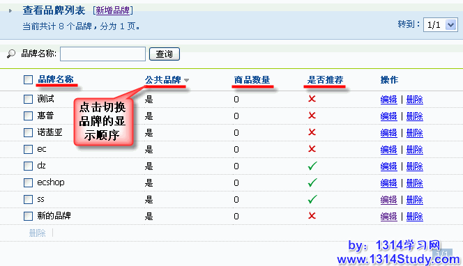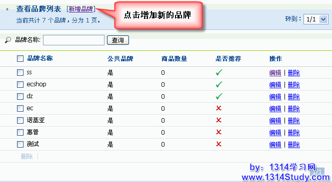 ECMall 后台 => 商品管理 => 品牌管理