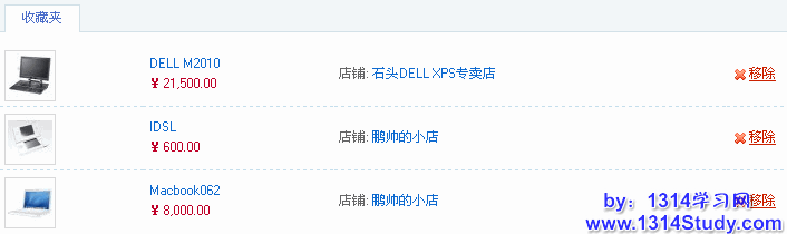 收藏夹里存放的是用户收藏的商品,同时也可以移除收藏的商品。