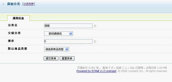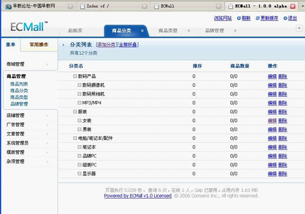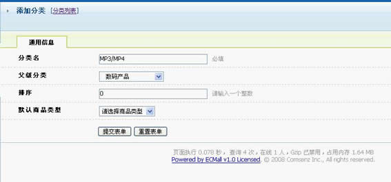 进入后台,依次打开“商品管理” => “商品分类”,即进入下图的界面: