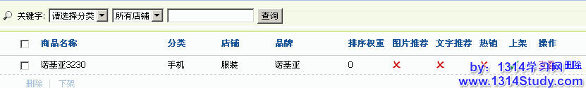 全部选择以后,点删除可批量删除商品,点下架可以让所以上架的商品批量下架。