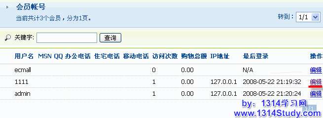 ECMall 后台 => 商城管理 => 会员帐号