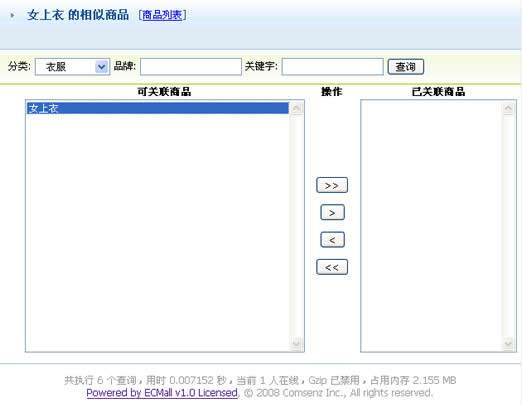 点击“相似商品”的链接,可以看到下图,为该商品关联相似商品。