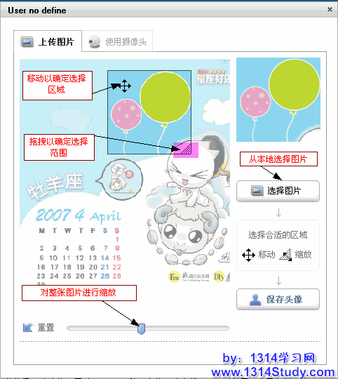 点击编辑头像按钮,即可编辑自己的头像,如下图所示:
