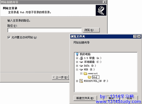 (4) 在网站分区中建立 wwwroot 以及下级站点文件夹 bbs。如图 18 所示: