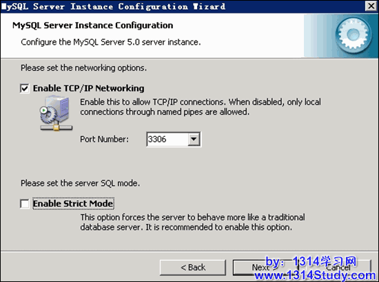 设定 MySQL 网络参数,注意:不要启用 Strict Mode! 如图 9 所示: