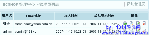 进入 ECShop 后台,权限管理->管理员列表,可以看到图 1 所示: