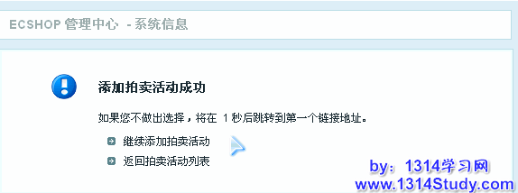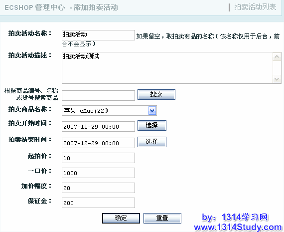 点击图 2 中的 确定 按钮,此次拍卖活动添加成功,见图 3 所示