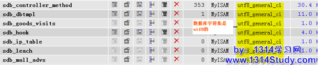 通过 pam(phpmyadmin)查看您的 Shopex 数据库使用的字符集,如图 3 所示: