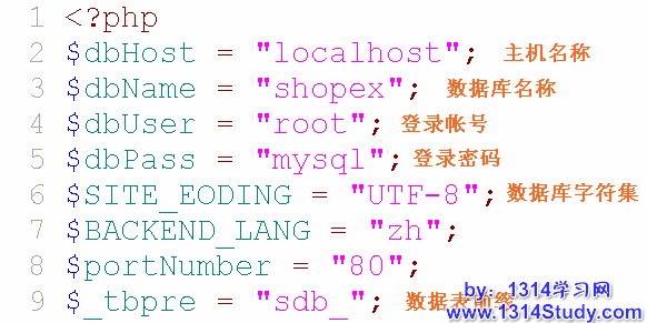 如果上面的信息都不是很清楚的话。可以查看 Shopex 目录下的 include/mall_config.php 文件。如图 6 所示: