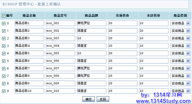 如果不是添加的虚拟商品的话一定要将“是否实体商品”这项添为 1,否则的话为 0。能否作为普通商品销售这一项添为1作为普通商品销售,否则只能作为配件或赠品销售。