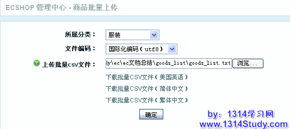 进入后台管理中心 商品管理-〉商品批量上传,进入商品批量上传页面。见图 1 所示: