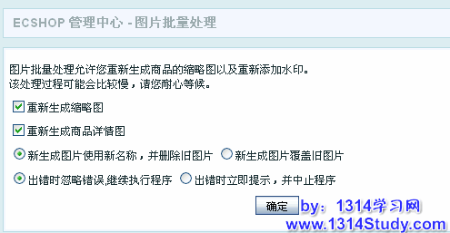 做图片批量处理时要注意:如果不选中添加水印的话,只是生成商品的缩略图,而商品详细页面的图片还是保持上传时的原始图片的大小。为了自适应各个页面的显 示所以要把生存缩略图和添加水印都选中(如果不需要图片上有水印的话可以在系统设置->商品设置 里将水印的透明度设为0)。