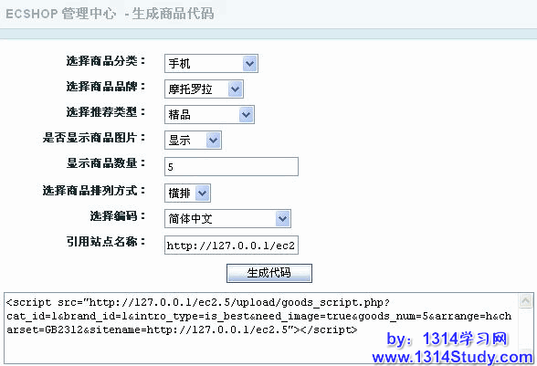 说明:此功能的主要是将网店商品信息按指定的样式以生成js代码的形式取出后以广告的形式投放到其他的网站。