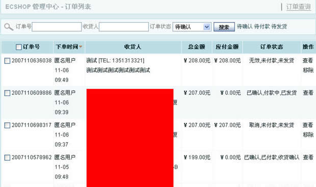 对于一个访问量很大的系统,每天进出的订单很多,所以订单查询并不可少,如图 3 所示的 ECShop 商城的订单查询系统。