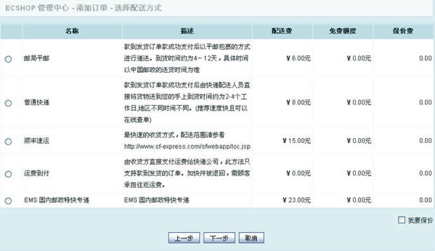 第四步是选择配送方式,也就是商品的寄送方式,如图 11 所示: