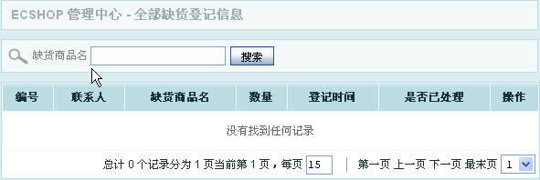用户在前台购买商品的时候,如果购买的数量超过了库存,此时用户可以在前台给店主进行缺货登记,这样在后台缺货登记的地方就有记录了。如图 6 所示: