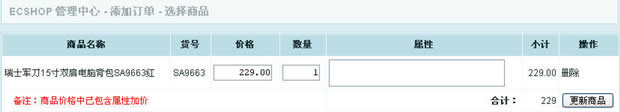 此为已经添加到订单的商品,同样你也可以在这里对已经添加的商品的信息进行修改。