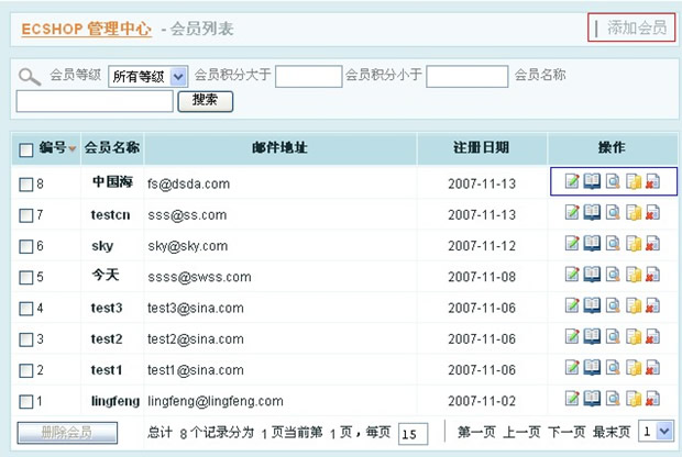 网店除了用户可以在前台注册外,管理员在后台也可以直接添加会员。