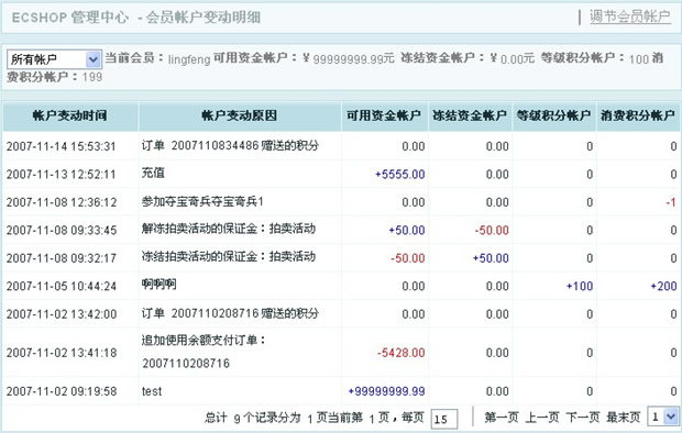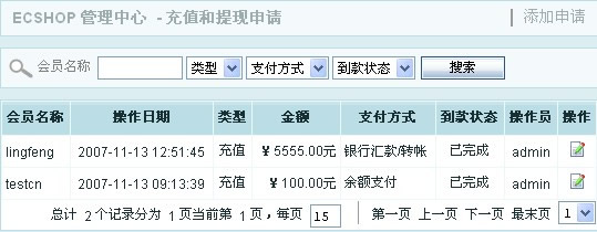 在这里可以看到会员在前台进行的一些充值提现操作。