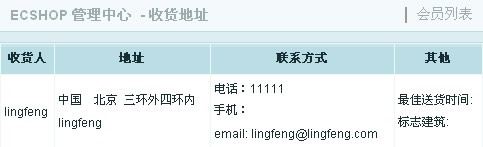 点击 查看收货地址,将得到该用户设置的收货地址,如果该用户没有设置,将得到一个空白的页面。如图 3 所示