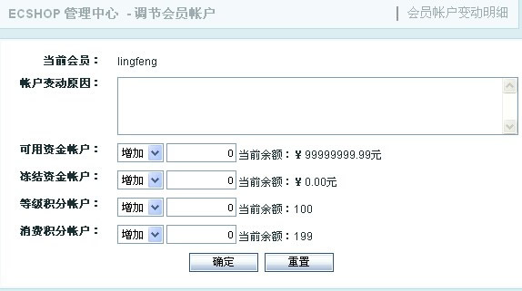 在这里可以对该用户的账户进行操作。有资金,积分的操作。