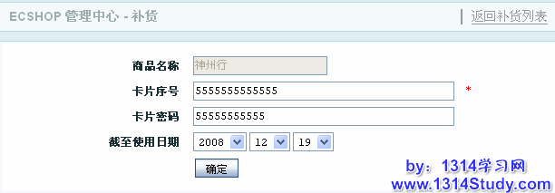 进入 ECShop 的后台系统 => 商品管理 => 添加新虚拟卡,进入添加虚拟卡页面,见下图所示: