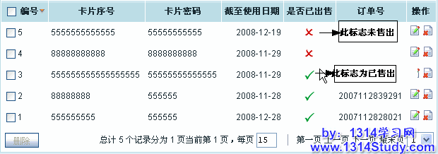 添加完卡号和密码后,点击确定,进行虚拟卡卡号和密码的列表页面,见下图所示: