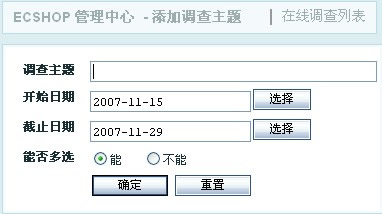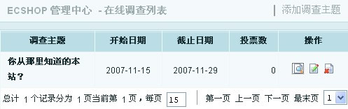 进入网店后台,点击左侧导航栏中的文章管理 -> 在线调查 ,出现如图 1 所示: