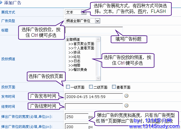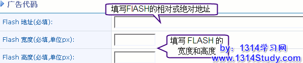 FLASH 广告,如果广告类型选择“FLASH”,将看到: