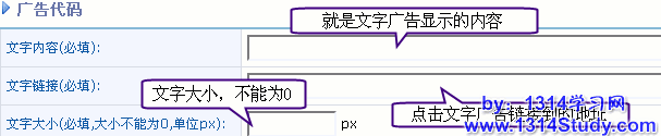 文本广告,如果广告类型选择“文本”,将看到如下图广告代码设置: