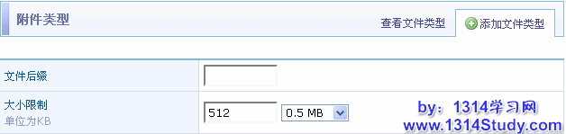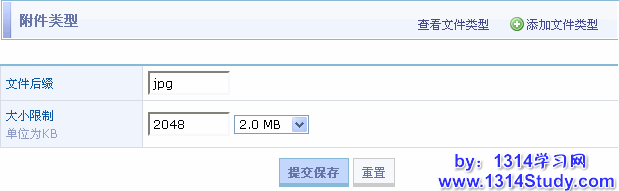 在这里可以填写您要添加的附件类型的名称和允许上传的最大尺寸。点击“提交保存”提交。