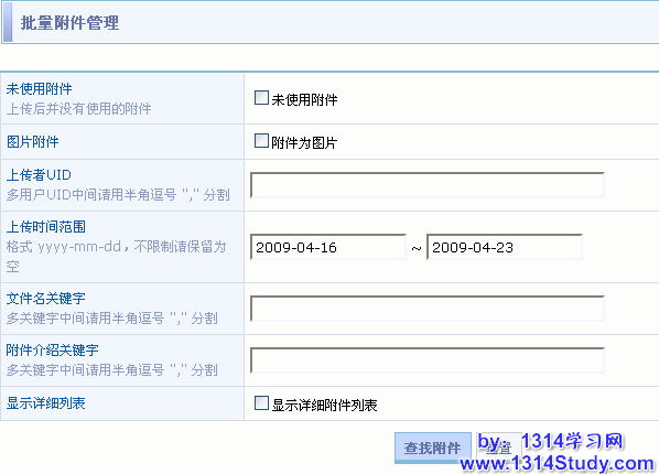 在这里可以批量维护您网站上传的附件,SupeSite 7.0 系统后台 => 批量维护 => 上传附件管理。